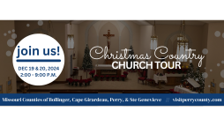 In its 20th season, this free, self-guided tour allows you to create your own unique trip among 39 rural churches scattered about the countryside of Perry, Cape, Bollinger, and Ste. Genevieve counties. All churches - from one-room buildings to brick-and-mortar masterpieces - will be decorated for the holiday season.