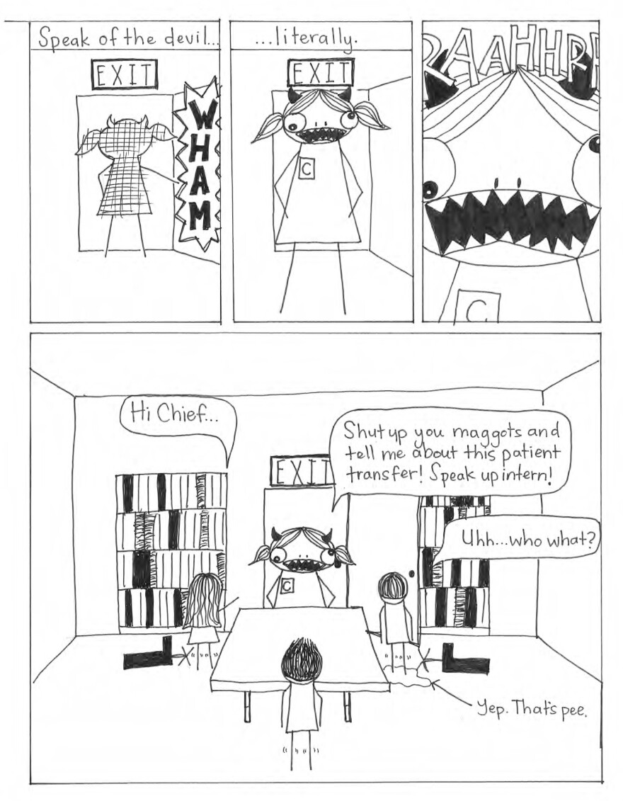 In one particularly harrowing image, a student "depicted his supervising physician screaming at the medical team, causing one intern to urinate herself moments before having her head bitten off for possessing too little information about a patient," the authors wrote.