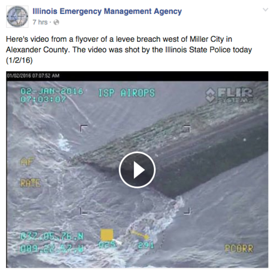 Click here to see video footage from the Illinois State Police of the levee breach west of Miller City in Alexander County.